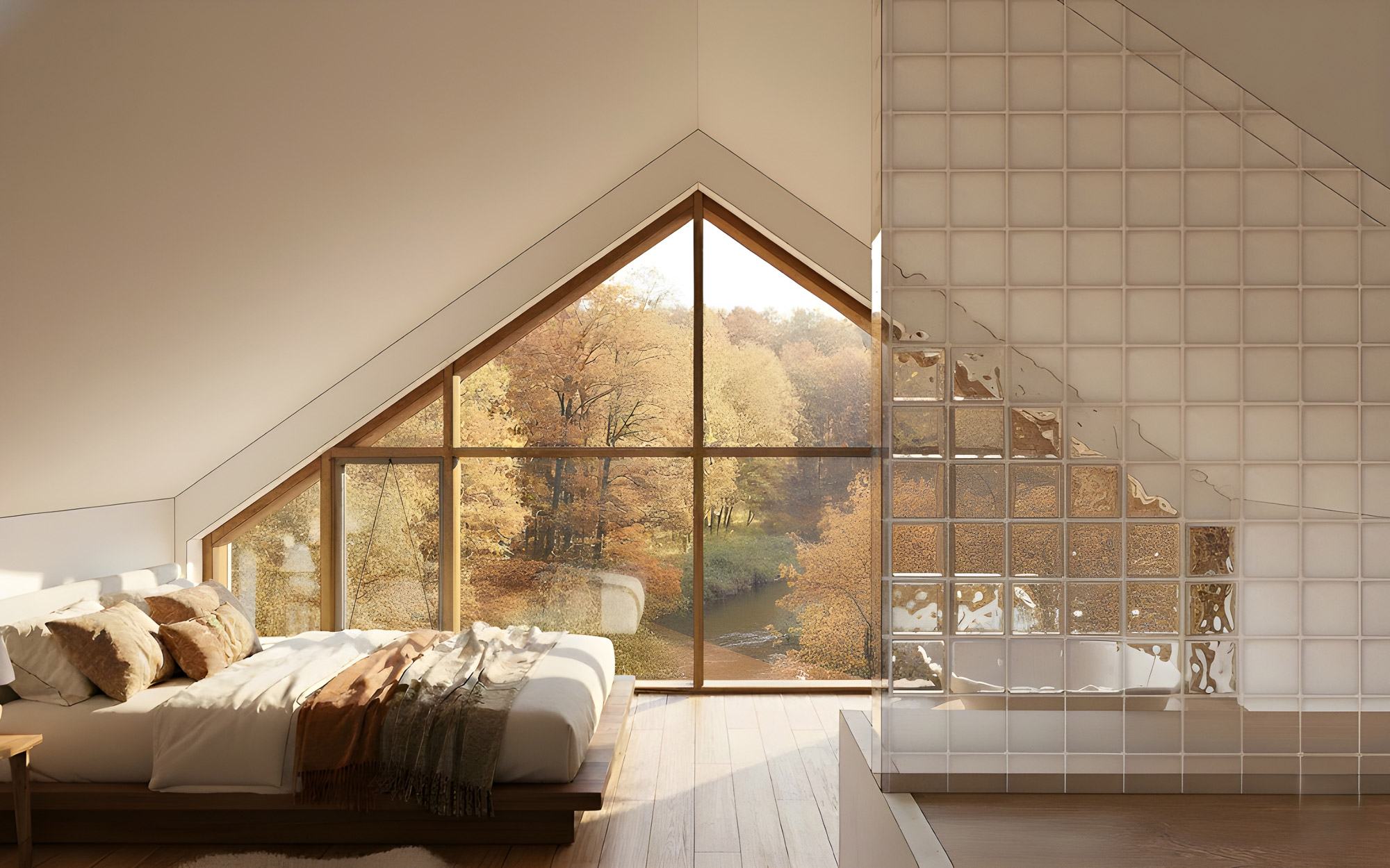 Gestalterisch wird der Umbau über eine markante Materialität gefasst: Das Erdgeschoss erhält eine robuste Steinfassade als erdverbundener Sockel, während das Obergeschoss mit einer schwarzen Holzfassade einen zurückhaltenden, monolithischen Aufbau bildet. Die bewusste Zweiteilung betont die Horizontale, verankert das Gebäude im Gelände und lässt es zugleich im Schatten der Bäume optisch zurücktreten. So entsteht ein prägnantes, dennoch ruhiges Wohnhaus mit klarer Identität und hoher Aufenthaltsqualität im Wald.