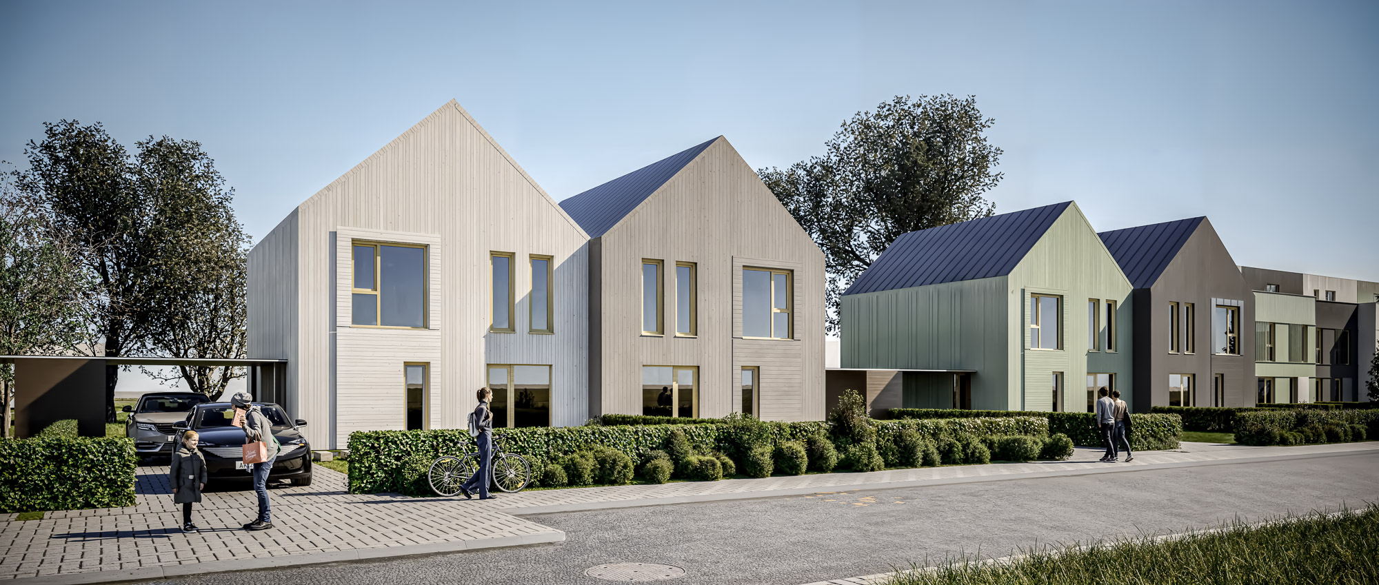 quartiersbezogen | Reihen- und Doppelhäuser in unterschiedlichen Typologien