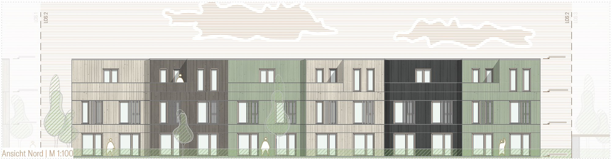 Wettbewerbsergebnis: 2. Platz | Wohnungsbau | Holzrahmenbauweise